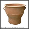 | 粗い粒子を含んだ粘土でつくり、焼いた後も水に浸して硬く締め、素朴で堅牢な質感に出来上がっています。クレタ島の伝統的な形で、しかも独特なデザイン。勿論底穴有りで植栽も可能ですが、オブジェとしても御使用いただけます。 | |