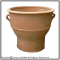 | 粗い粒子を含んだ粘土でつくり、焼いた後も水に浸して硬く締め、素朴で堅牢な質感に出来上がっています。クレタ島の伝統的な形で、しかも独特なデザイン。勿論底穴有りで植栽も可能ですが、オブジェとしても御使用いただけます。 | |