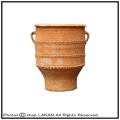 | 粗い粒子を含んだ粘土でつくり、焼いた後も水に浸して硬く締め、素朴で堅牢な質感に出来上がっています。クレタ島の伝統的な形で、しかも独特なデザイン。勿論底穴有りで植栽も可能ですが、オブジェとしても御使用いただけます。 | |