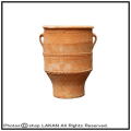 元来、クレタ島の地場産業であるワイン、オリーブ油とか水などの貯蔵用の生活用品として作られていたクレタ島の陶器の鉢シリーズ。丈夫な器にするため、粗い粒子を含んだ粘土でつくり、焼いた後も水に浸して硬く締め、素朴で堅牢な質感に出来上がっています。