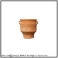 | 粗い粒子を含んだ粘土でつくり、焼いた後も水に浸して硬く締め、素朴で堅牢な質感に出来上がっています。クレタ島の伝統的な形で、しかも独特なデザイン。勿論底穴有りで植栽も可能ですが、オブジェとしても御使用いただけます。 | |