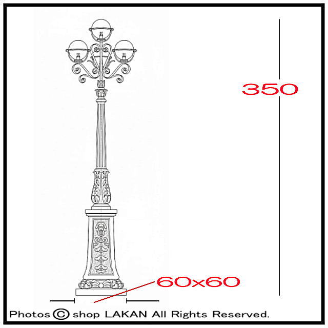 | 補足 | 外灯グローブ部:約φ32.0(鉄枠含/1灯) 全体幅:91.0cm |